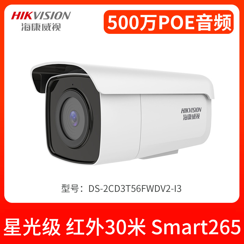 • 海康威視(HIKVISION)500萬(wàn)星光級(jí)可錄音 監(jiān)控器室外紅外槍機(jī)DS-2CD3T56FWDV2-I3